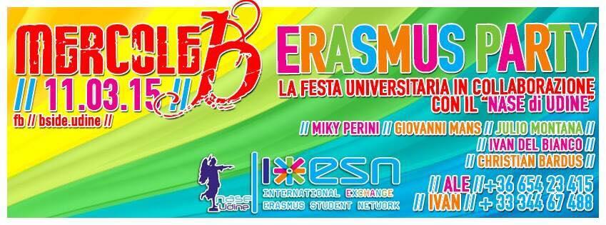Students' party at B!side is back, and so is the ERASMUS PARTY, in collaboration with ESN NASE Udine!