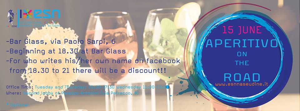 Dear Erasmus, ESN Nase Udine invites you to one of the last aperitifs/happy hours before the beginning of the summer exam session: University Aperitif On The Road!