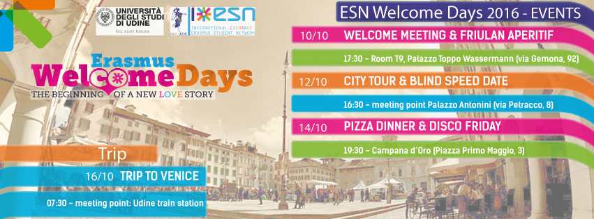 * Potranno partecipare agli eventi dei Welcome Days solo i possessori di ESNcard. Ricordiamo che con ESNcard avrete inoltre diritto a sconti in locali e negozi convenzionati a Udine e in ogni città con una sezione ESN.