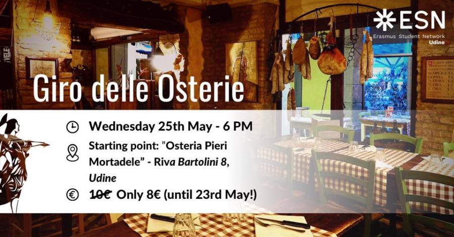 En cualquier caso, ¡no tengas miedo! Si quieres revivir la típica experiencia friulana o probarla por primera vez, ¡vuelve el Giro delle Osterie de ESN Udine! ¡Ven con nosotros a las tabernas de Udine, probarás los vinos locales y los típicos "canapés" a un precio especial, pasarás una noche diferente en compañía, y tal vez incluso podrías encontrar tu nueva taberna de confianza!