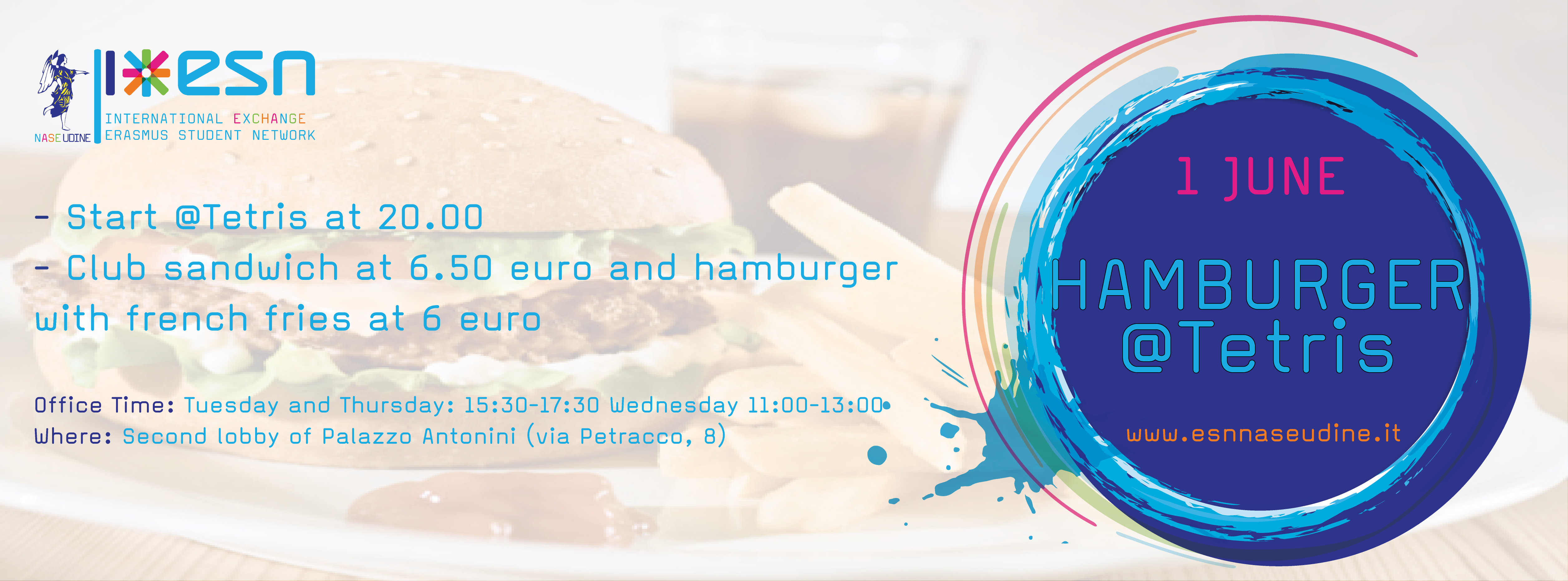 -Club sandwich a 6,50€ e hamburgher più patatine a 6€ (solo con ESN Card)