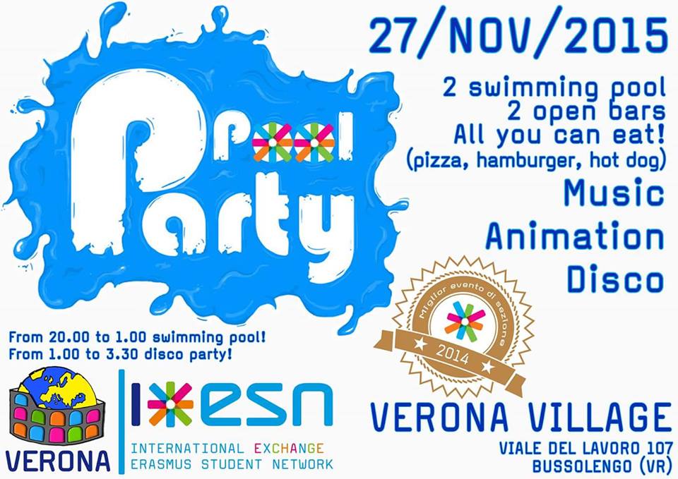 ASE - Esn Verona ci invita al celebre POOL PARTY, una festa imperdibile vincitrice del premio "MIGLIOR EVENTO ESN 2014".