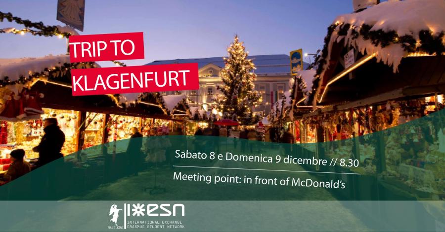 ESN NASE Udine ti dà l'opportunità di conoscere l’Austria per un favoloso weekend: scopri il lago di Wörthersee, i famosi mercatini di Natale (Christkindlmarkt) di Klagenfurt e le acque termali di Villach!