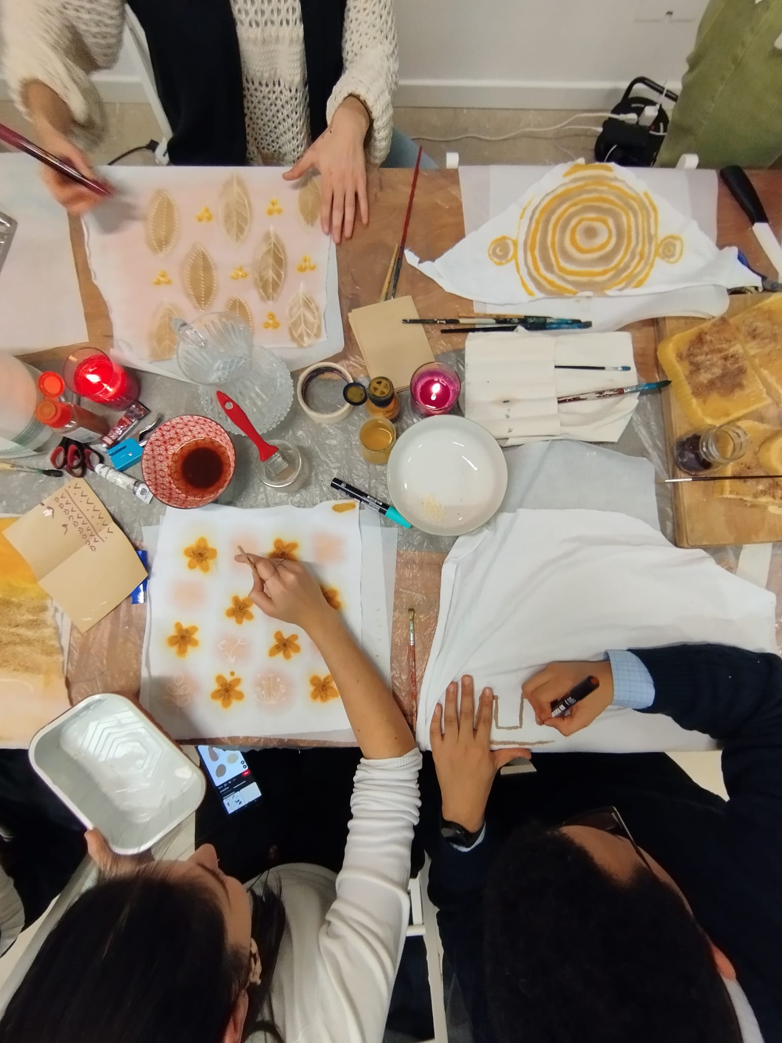 During the workshop, our participants got their hands dirty (well, waxy!) by choosing colorful fabrics and ironing them to perfection to create their own custom sets of wraps to take home.